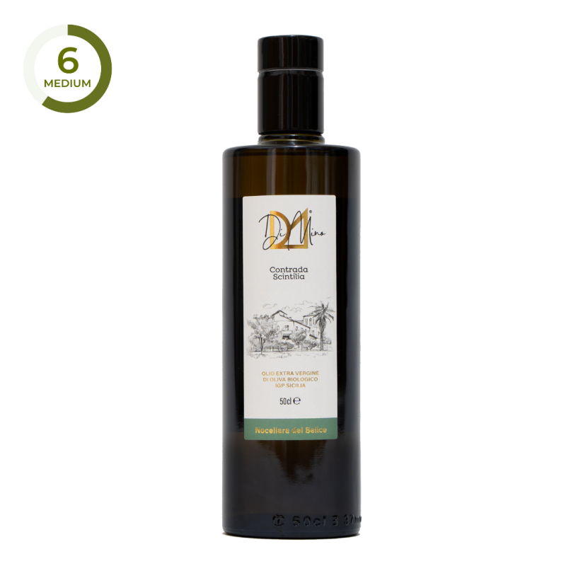 Deze Nocellara is karaktervol en stevig. Met toetsen van tomaat (wat een criterium is voor het verkrijgen van IGP Sicilia), artisjok en lichte amandel. Bitterheid en scherpte vullen de smaak harmonieus aan.