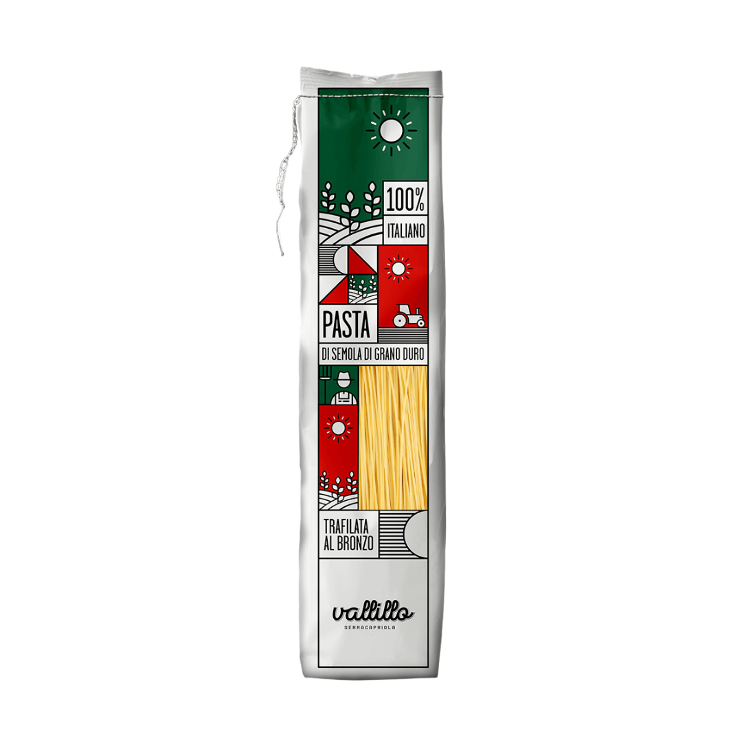 De pasta van Vallillo begint op meer dan 500 hectare vruchtbare grond in de heuvels van Serracapriola (Puglia), waar het mediterrane klimaat – met zee, zon en zachte berglucht – zorgt voor een natuurlijke rijping van de harde tarwe.