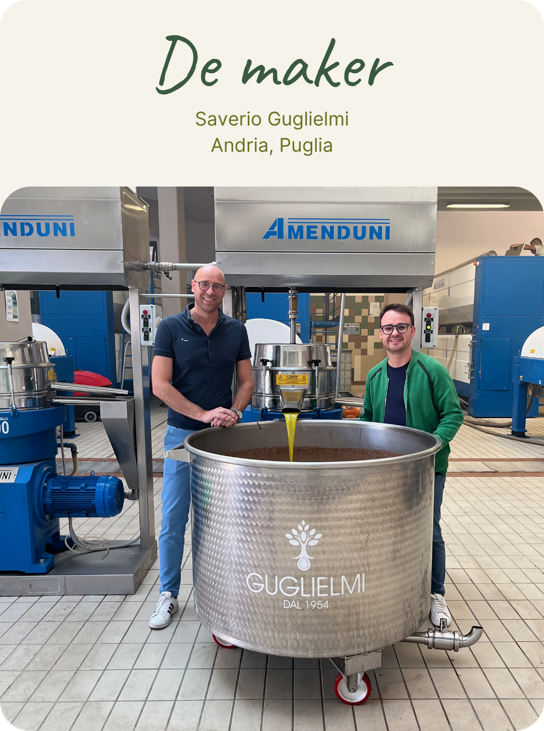 - Vertrouwen: Ontdek het verhaal achter het product. Ik ken elke olijfoliemaker en producent persoonlijk en ik bezoek hen regelmatig.