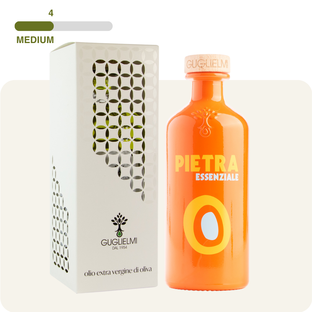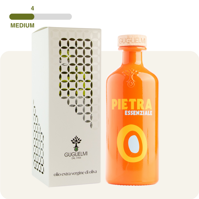 Pietra Essenziale is een delicate tot medium fruitige olijfolie uit een blend van olijfvariëteiten die bekend staan om hun zachte en ronde smaak.