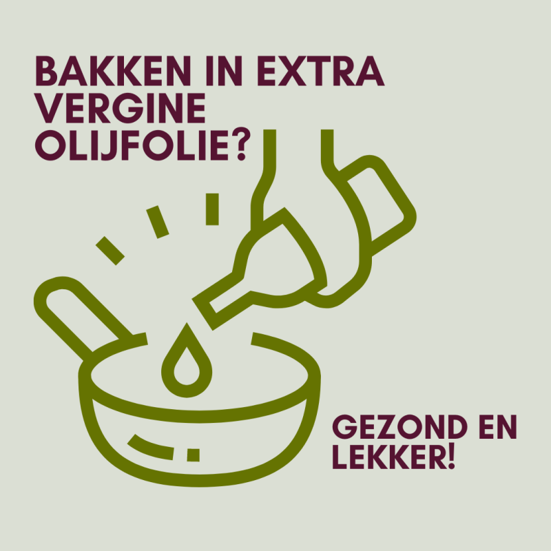 Bakken in extra vergine olijfolie is veilig en lekker. De olie kan goed verhit worden doordat hij heel stabiel is vanwege de onverzadigde vetzuren. Dit kan tot wel 207 graden Celcius (het rookpunt) als je hem snel verwarmt, bijvoorbeeld op een kookplaat.